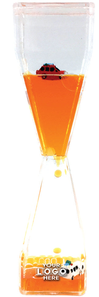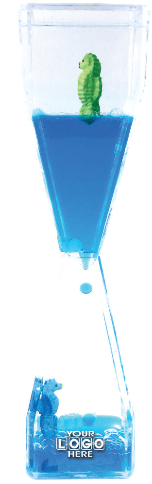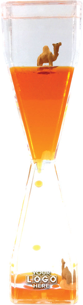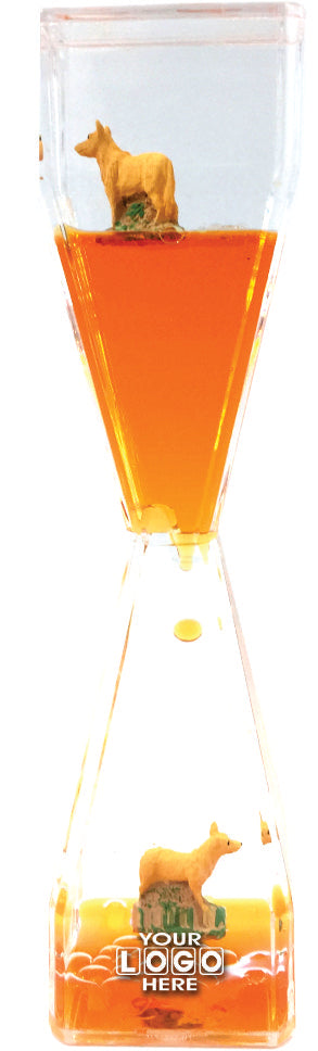 A tower shaped timer with coloured oil, and little animal floaters inside.