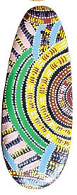 Traditional bullroarer featuring unique Indigenous art. Our bullroarers make the perfect souvenirs from Australia or a unique gift for anybody interested in Aboriginal culture.