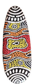 Traditional bullroarer featuring unique Indigenous art. Our bullroarers make the perfect souvenirs from Australia or a unique gift for anybody interested in Aboriginal culture.
