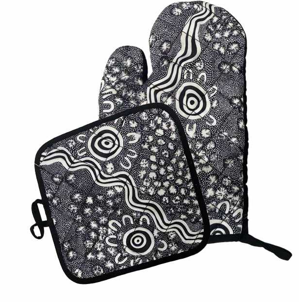 Includes oven mitt and pot holder made from 100% cotton for safe, comfortable handling.