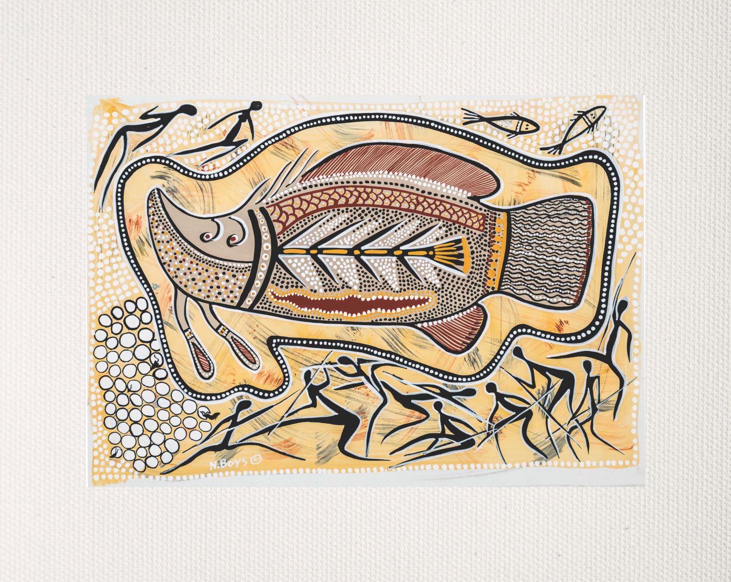 Bulurru Aboriginal Art Canvas Print Unstretched - Barramundi By Narrell Boys