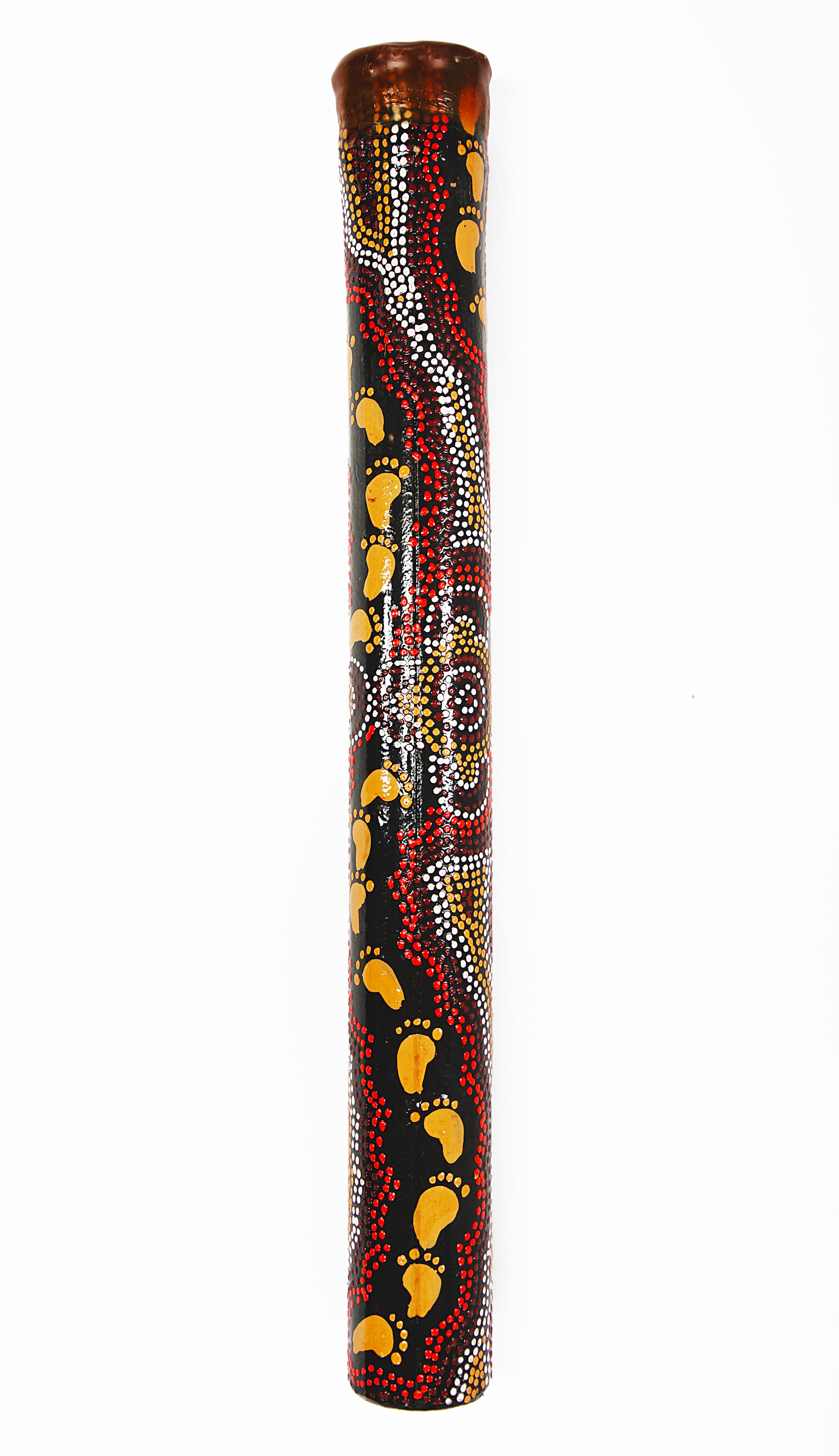 The didgeridoo is a traditional musical instrument originating from the Indigenous people of Australia. It is a long, cylindrical tube typically made from wood, and can range in length from about one to two meters.