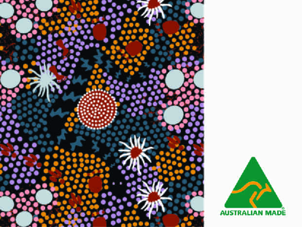 Australian made Aboriginal Sarongs featuring authentic designs printed on 100% cotton chiffon.