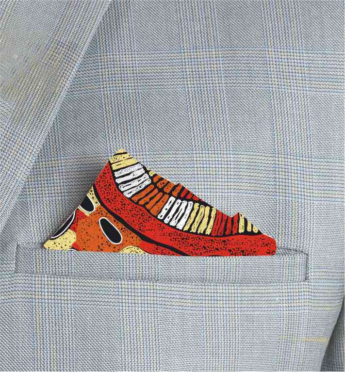 Our Australian made handkerchiefs are handcrafted using 100% cotton for a soft feel and durable quality. Hand printed using traditional batik techniques and non-toxic dyes. They feature beautiful designs of acclaimed indigenous artists whose story is included in the packaging. Our handkerchiefs are the perfect gift for dads, husbands, or your loving granddad who will certainly love a modern and colourful addition to their wardrobe.
