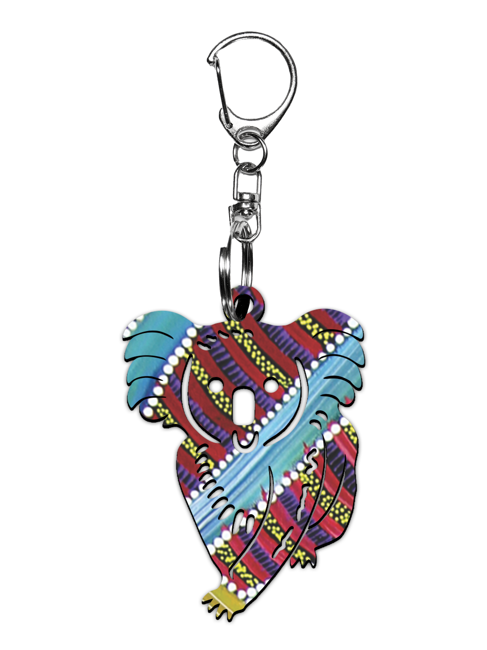 Discover Aboriginal art with our Wooden Koala Keyrings. Made in Melbourne using our Authentic Aboriginal designs. Artist information is on each keyring making this a perfect lightweight gift for overseas or a unique addition to your own keys or bag.