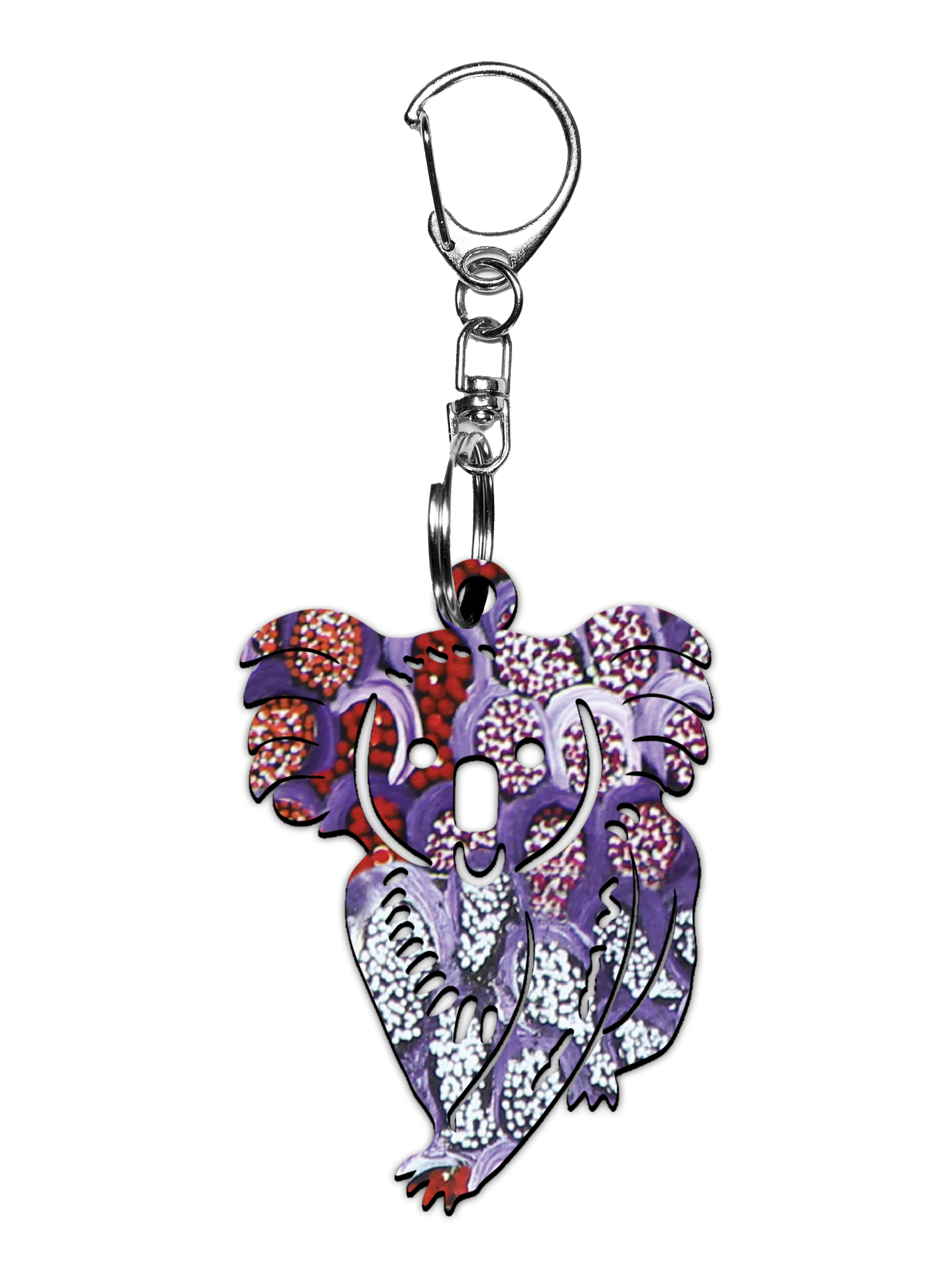 Koala Shape Wooden Keyring (Australian Made) - Cindy Wallace Purple