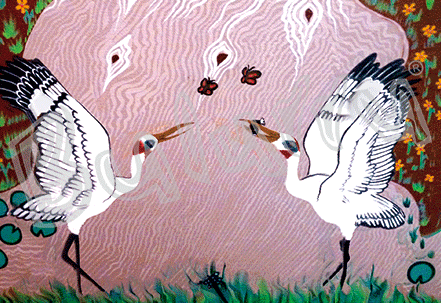 Wendy Pawley is from the Kamilaroi - Gomeroi, Gamilaraay people of Narrabri NSW. The meaning of Narrabri / Nurraburai is “Place of Forked Waters”. Wendy’s mother (the late) Mrs Noeleen Saunders (nee Trindall) was a widely known respected Traditional Owner of Narrabri and surrounding areas. Wendy paints her “Mother’s Country” predominantly the ancient spectacular rugged mountains of The Nandewar Ranges Ninghdoo, Kaputah, Yulludunida and Yulludanda that rise majestically above the Namoi Valley. The range is the remnants of an eroded basaltic shield volcano that formed about 18 million years ago, the volcanic plug in Gamilaaray language is called Ninghdoo / Nungadhun (pronounced locally as Ningy-doo). The Mount Kaputah area is included in Mount Kaputah National Park.