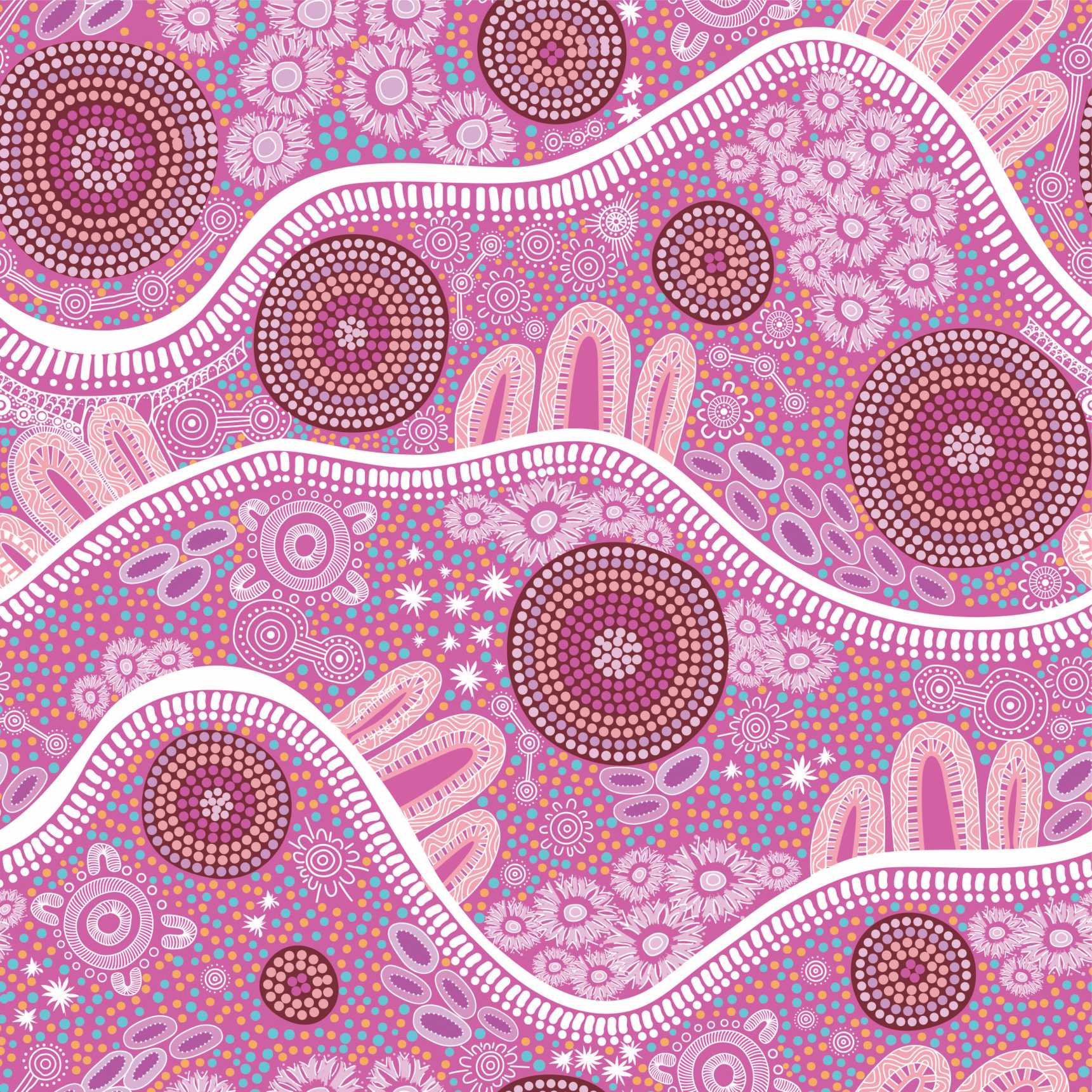 Aboriginal Fabric featuring the authentic Women's Journey pattern by Debbie Scott on 100% cotton homespun material.